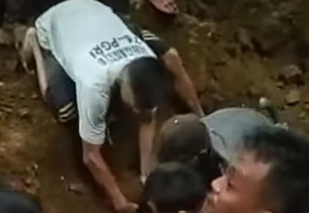 Berdasarkan video yang beredar, sejumlah warga setempat terlihat sedang berupaya menggali tanah yang menimbun kuli bangunan saat sedang bekerja.