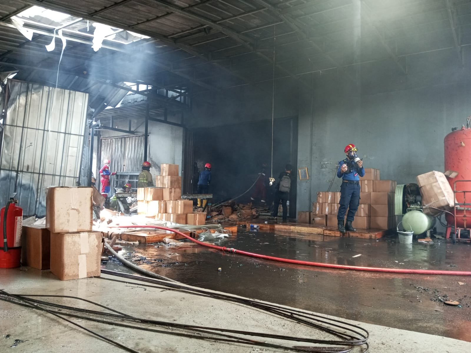 Adapun, besarnya kobaran api membakar sejumlah bahan baku pembuatan pigura.