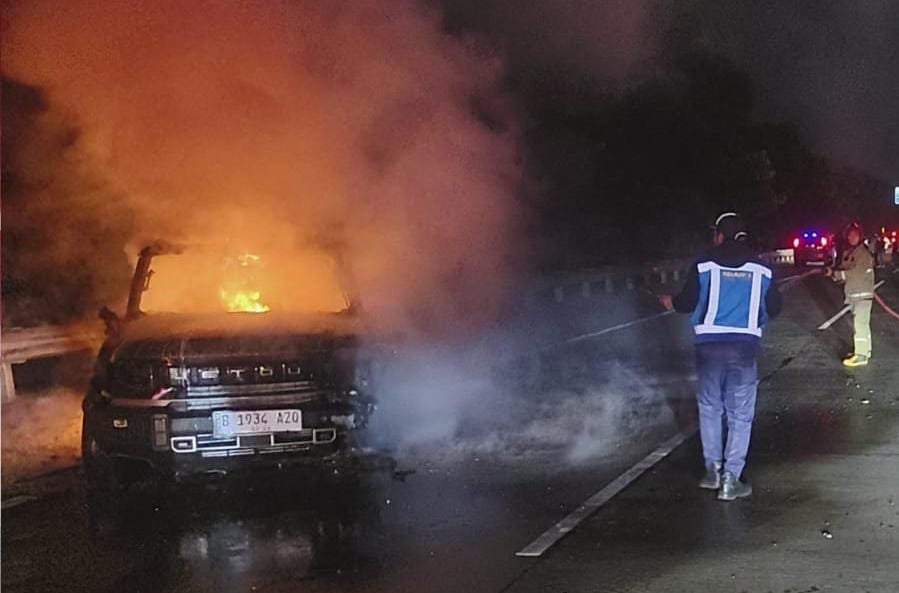 Mengetahui adanya kebakaran, petugas Jalan Tol Jagorawi kemudian melaporkan langsung kejadian itu ke Sektor Bogor Indo untuk segera memadamkan mobil yang terbakar tersebut.