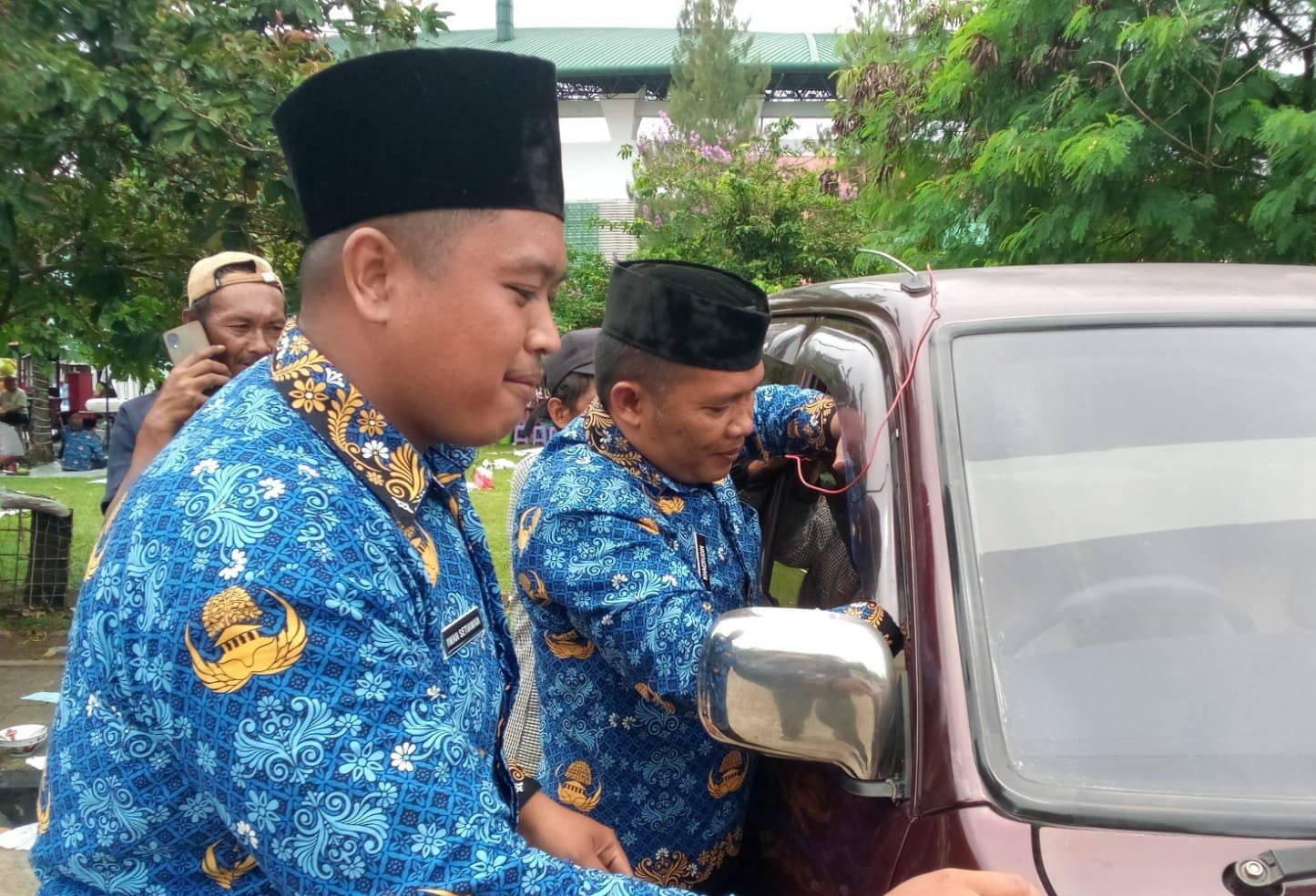 Petugas langsung menangani mobil yang terkunci milik pengunjung di area tersebut.