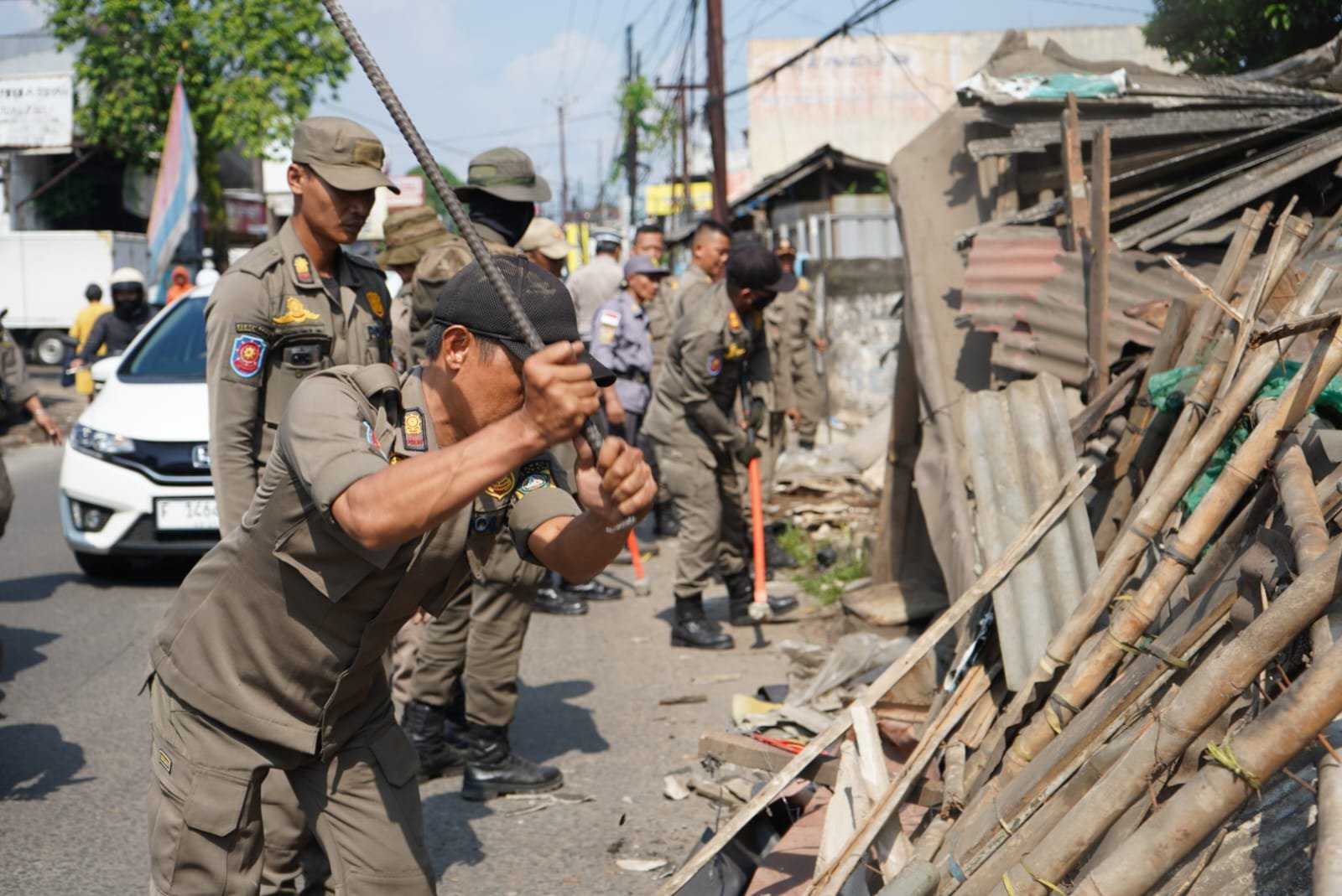 Pembongkaran lapak PKL di wilayah Kecamatan Parung, Kabupaten Bogor (Dok. Satpol PP)