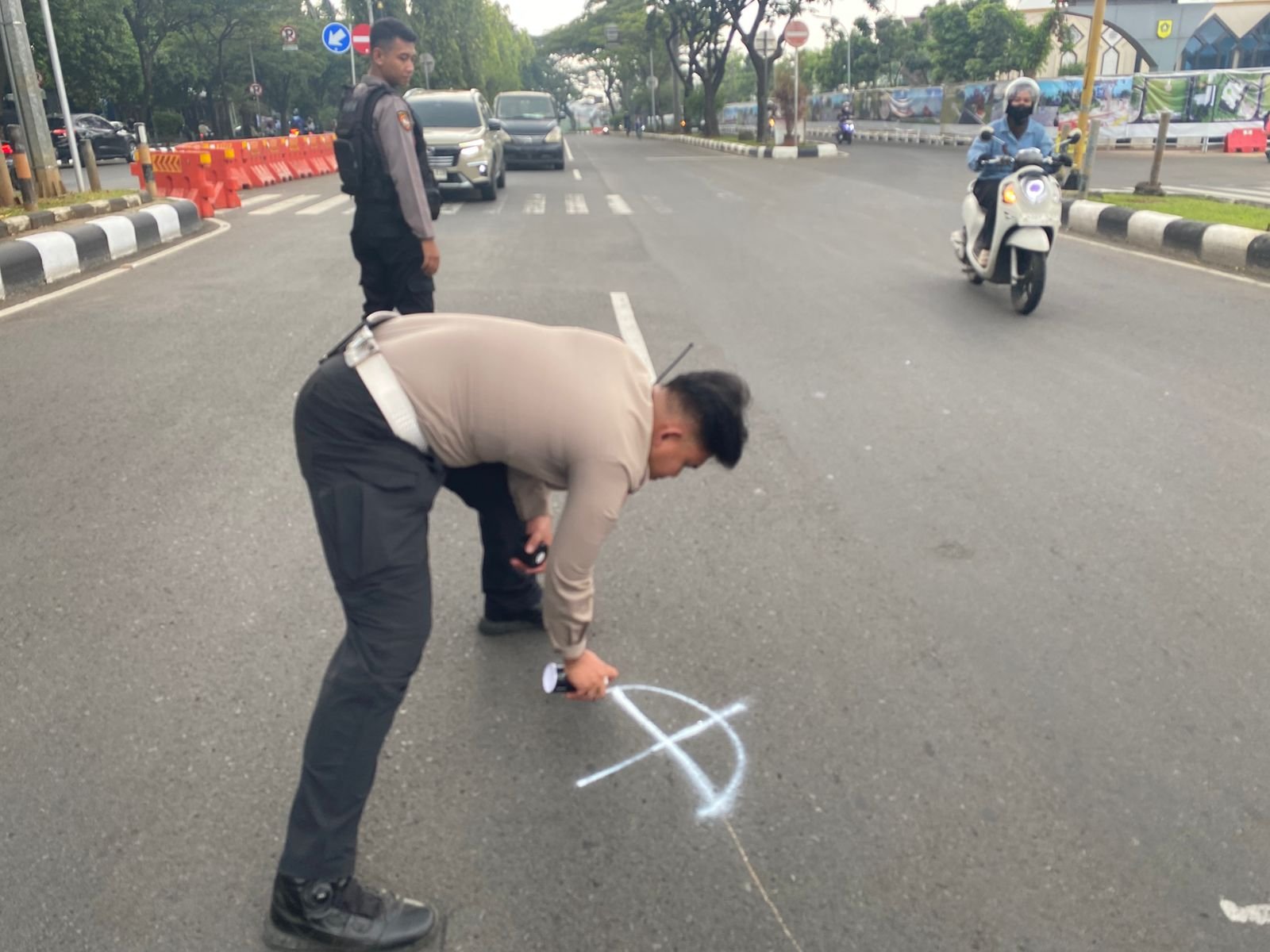 Olah TKP kecelakaan di kawasan Pemda, Cibinong, Kabupaten Bogor. (Dok.Polisi)