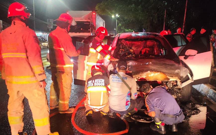 Bogor24Update – Satu unit mobil sedan terbakar di Jalan Raya Jakarta-Bogor, Desa Cimandala, Kecamatan Sukaraja, Kabupaten Bogor, Kamis 12 Maret 2026.