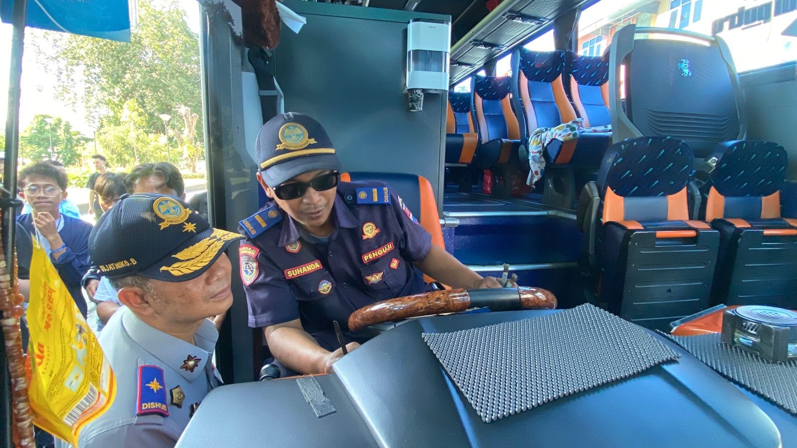 Pada pemeriksaan visual, petugas memastikan tidak ada benda yang menutup kaca depan maupun mengganggu fungsi spion.