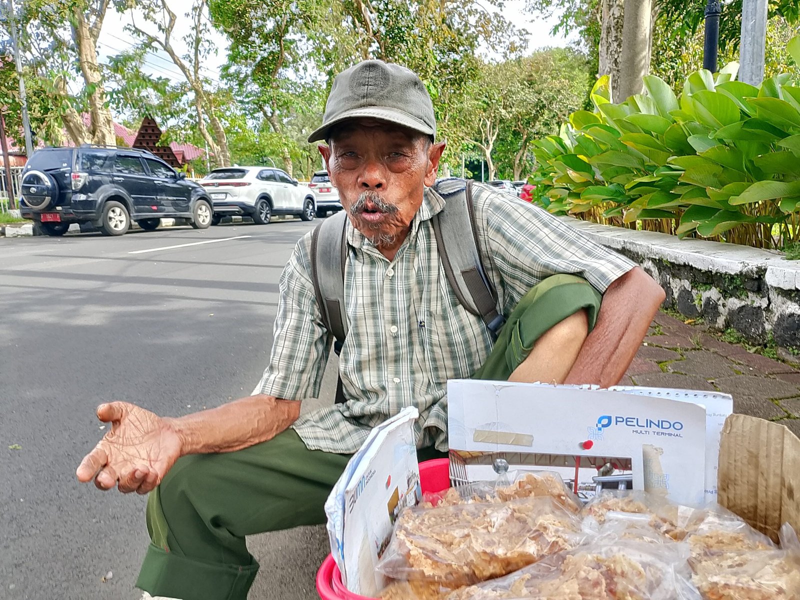 “Iya, lagi puasa. Saya jualan jalan kaki setiap hari. Kadang sampai ke Pemda sini, kadang juga sampai Pasar Cibinong,” ujar Karjito saat ditemui wartawan di kawasan Cibinong, Jumat 13 Maret 2026.