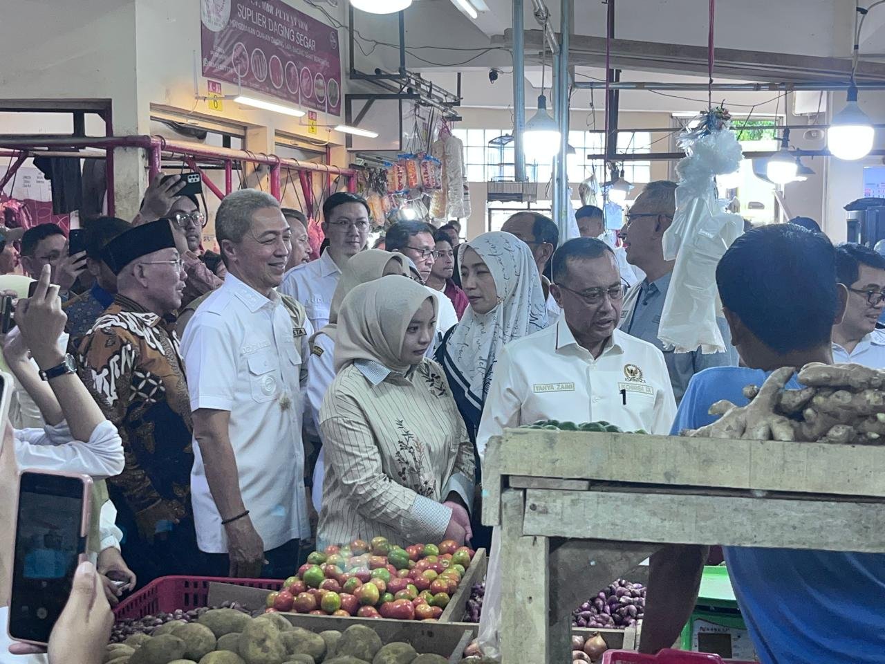 Kunjungan tersebut dilakukan untuk memastikan penerapan standar keamanan pangan di pasar tradisional sekaligus memantau stabilitas harga menjelang bulan suci Ramadan dan Idulfitri.