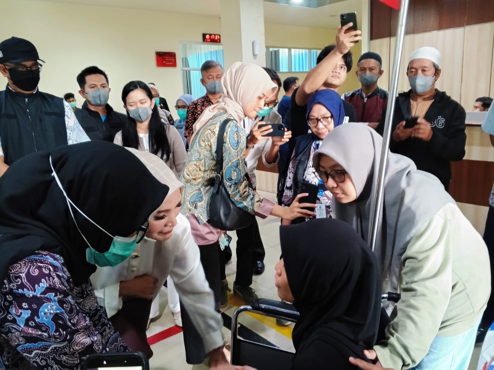Ketua Tim Penggerak Pemberdayaan dan Kesejahteraan Keluarga (TP PKK) Kota Bogor, Yantie Rachim turut menjenguk korban di rumah sakit.