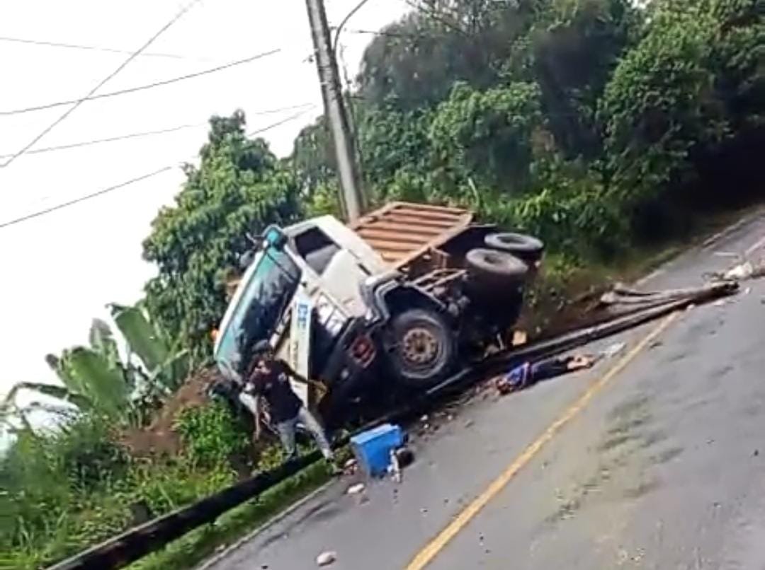 Kemudian, truk tersebut membanting setir ke kanan dan oleng yang mengakibatkan membentur pagar pembatas jalan.