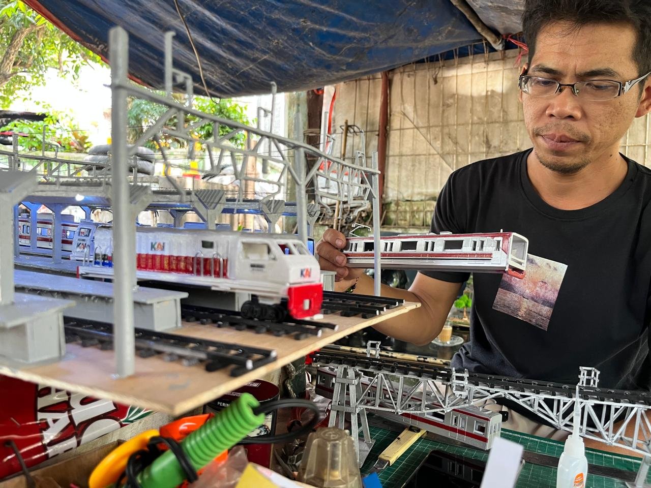“Jadi bukan hanya gerbong, saya juga membuat miniatur seperti stasiun, jembatan, dan lintasan rel,” tuturnya.
