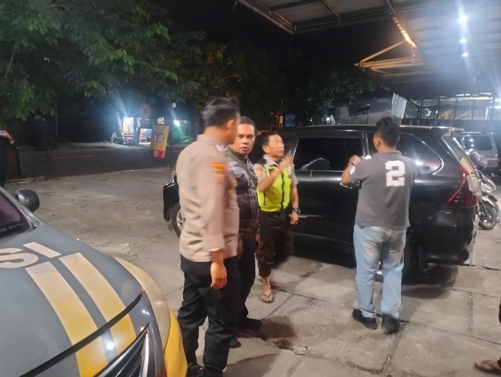 Pihak kepolisian saat mengecek lokasi kejadian pencurian laptop dengan pecah kaca mobil di kawasan Cibinong. (Dok Polisi)