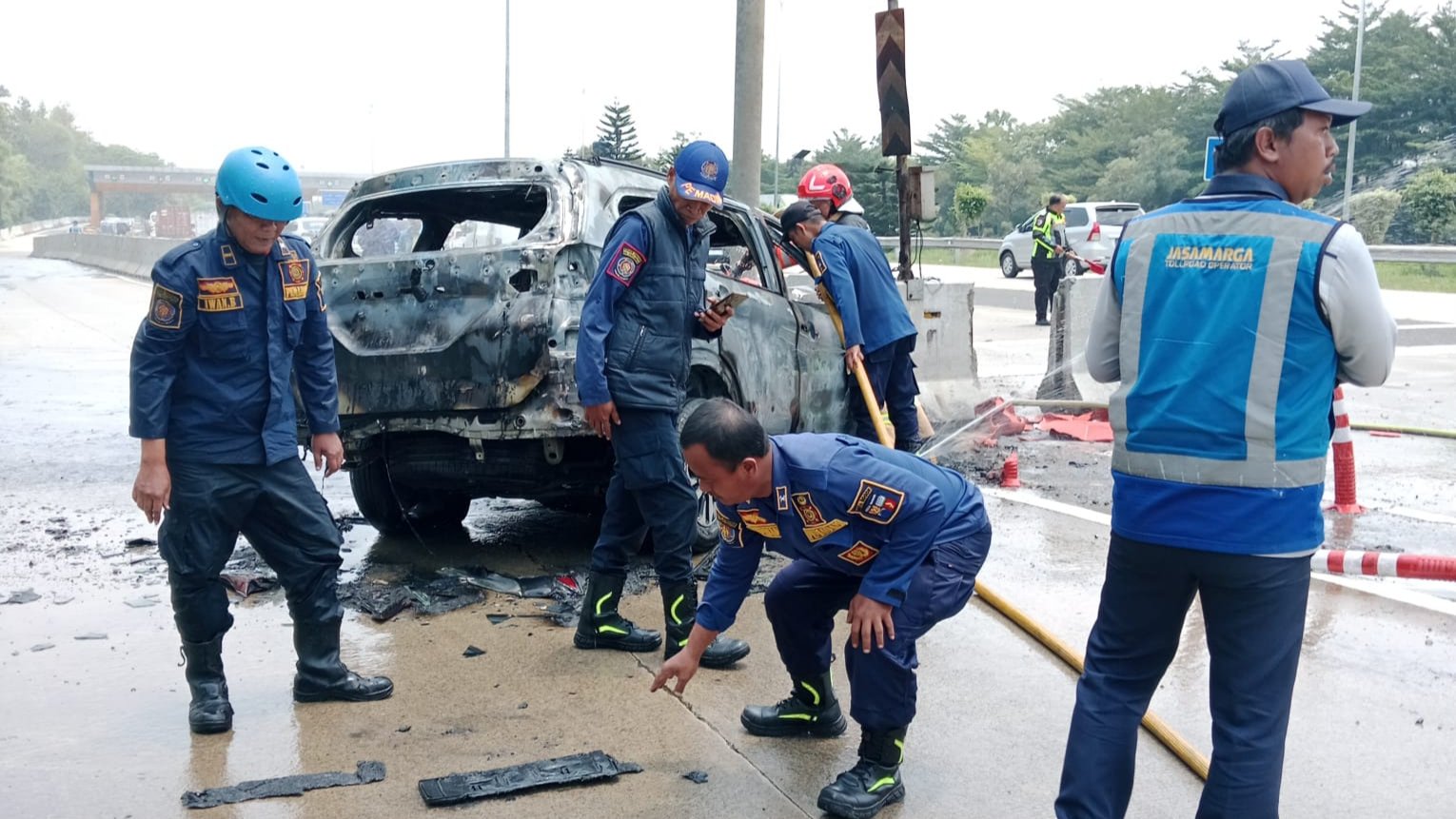 Kebakaran mobil di kilometer 41 Gerbang Tol Ciawi, Kelurahan Katulampa, Kecamatan Bogor Timur. Dok. DPKP Kota Bogor.