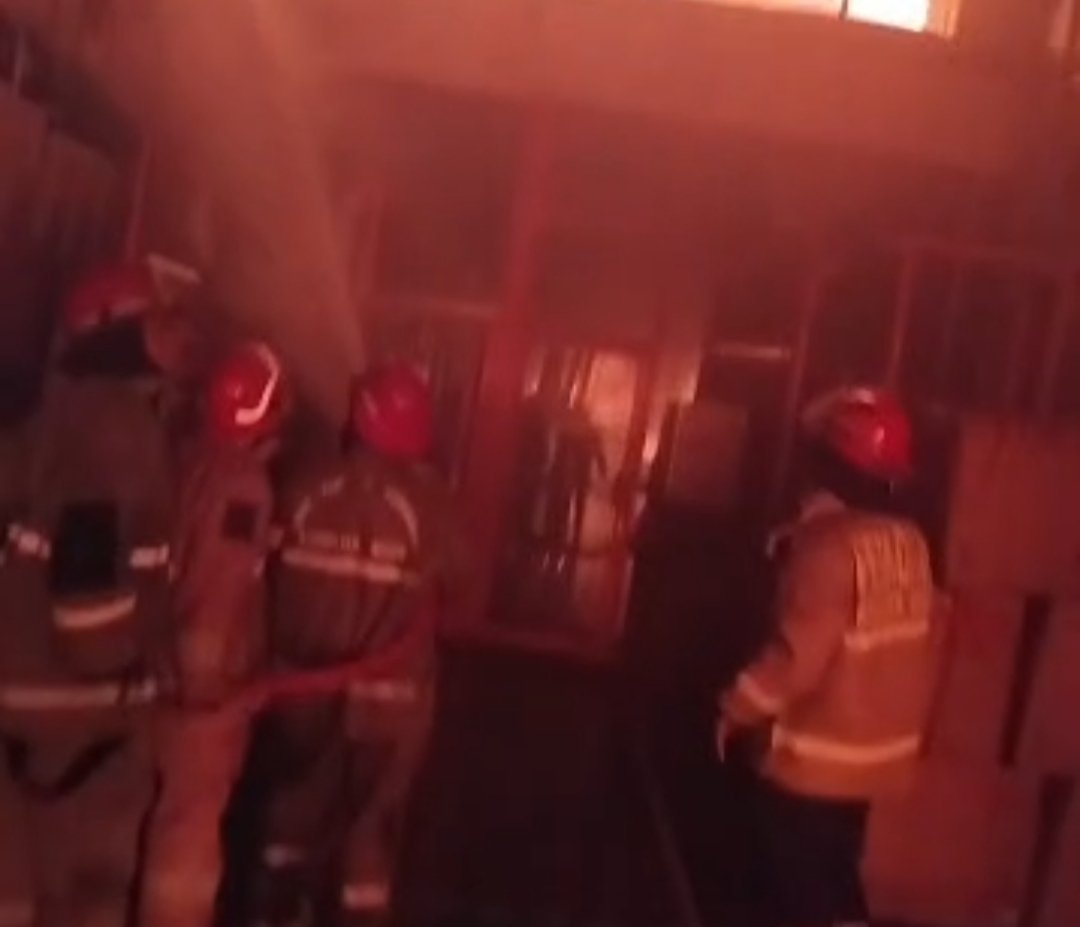 Berdasarkan video yang beredar, kobaran api melahap hampir ke seluruh bangunan pabrik.