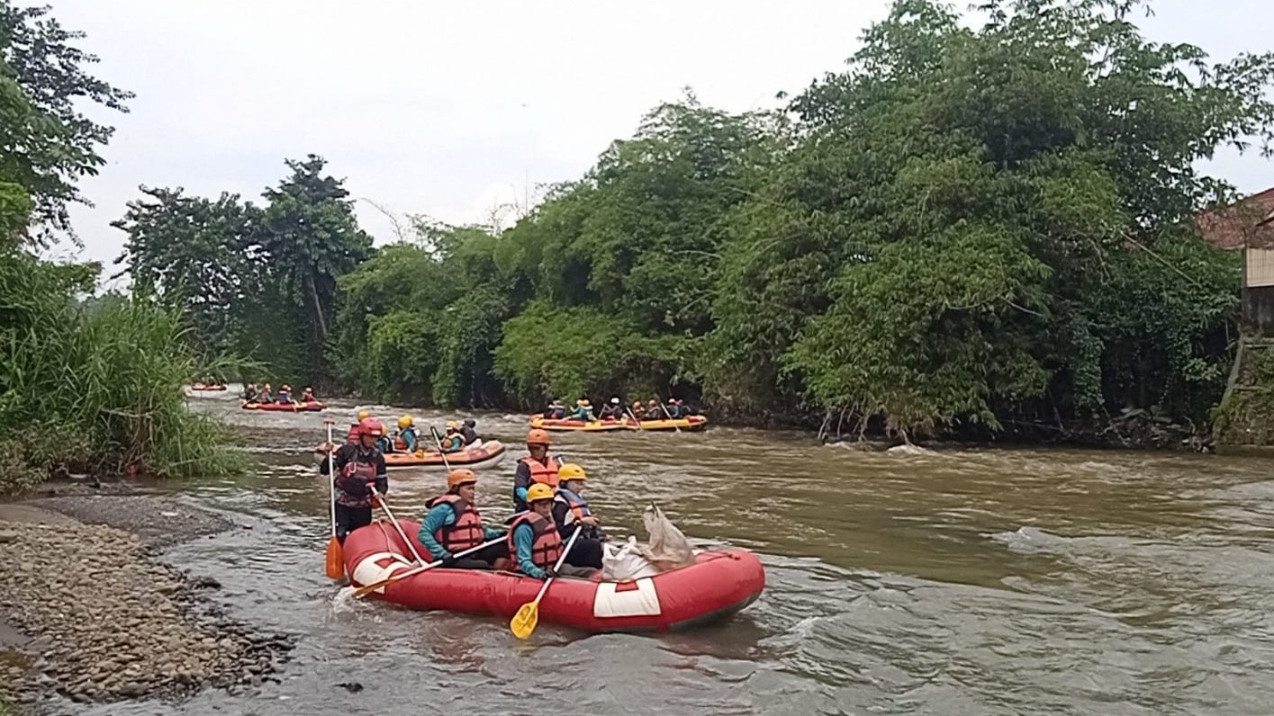 Kegiatan tersebut diikuti sekitar 45 peserta dengan menggunakan 10 perahu karet dan tiga kano, serta didukung tim pengamanan dari BPBD Kota Bogor.