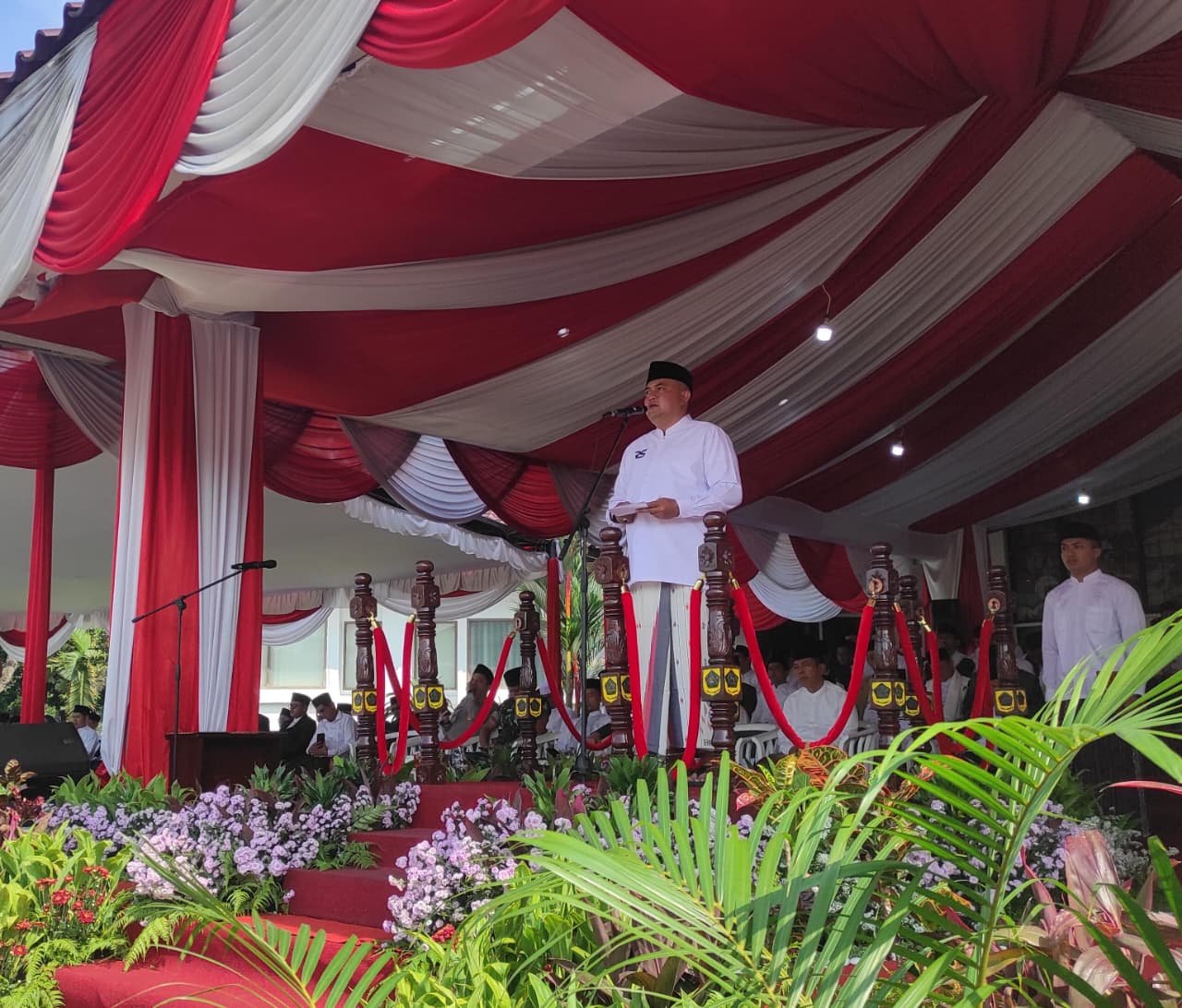 Bupati Bogor Rudy Susmanto saat memberikan sambutan pada peringatan Hari Santri Nasional di Lapangan Tegar Beriman (Anggi Juhairiah | Bogor24Update)