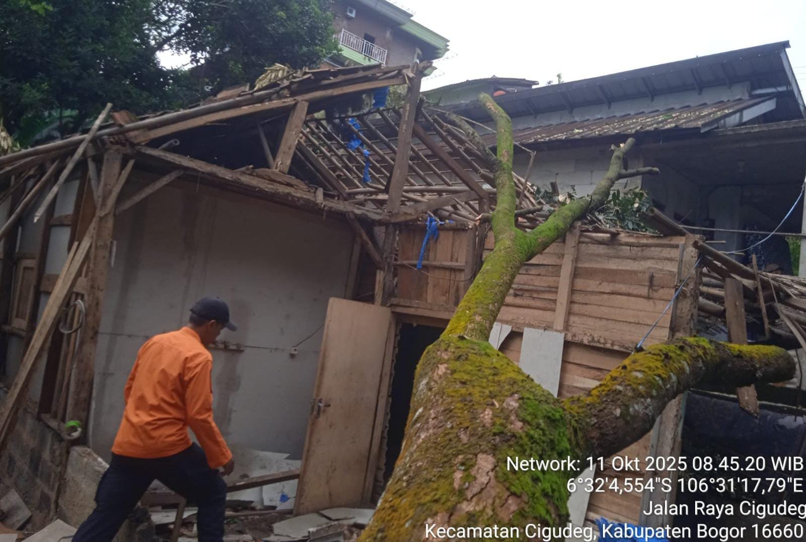 Bogor24Update – Hujan deras dan angin kencang mengakibatkan sebuah pohon tumbang menimpa satu unit rumah hingga ambruk di Kampung Kebon Pedes, Desa Wargajaya, Kecamatan Cigudeg, Kabupaten Bogor, pada Jumat, 10 Oktober 2025.