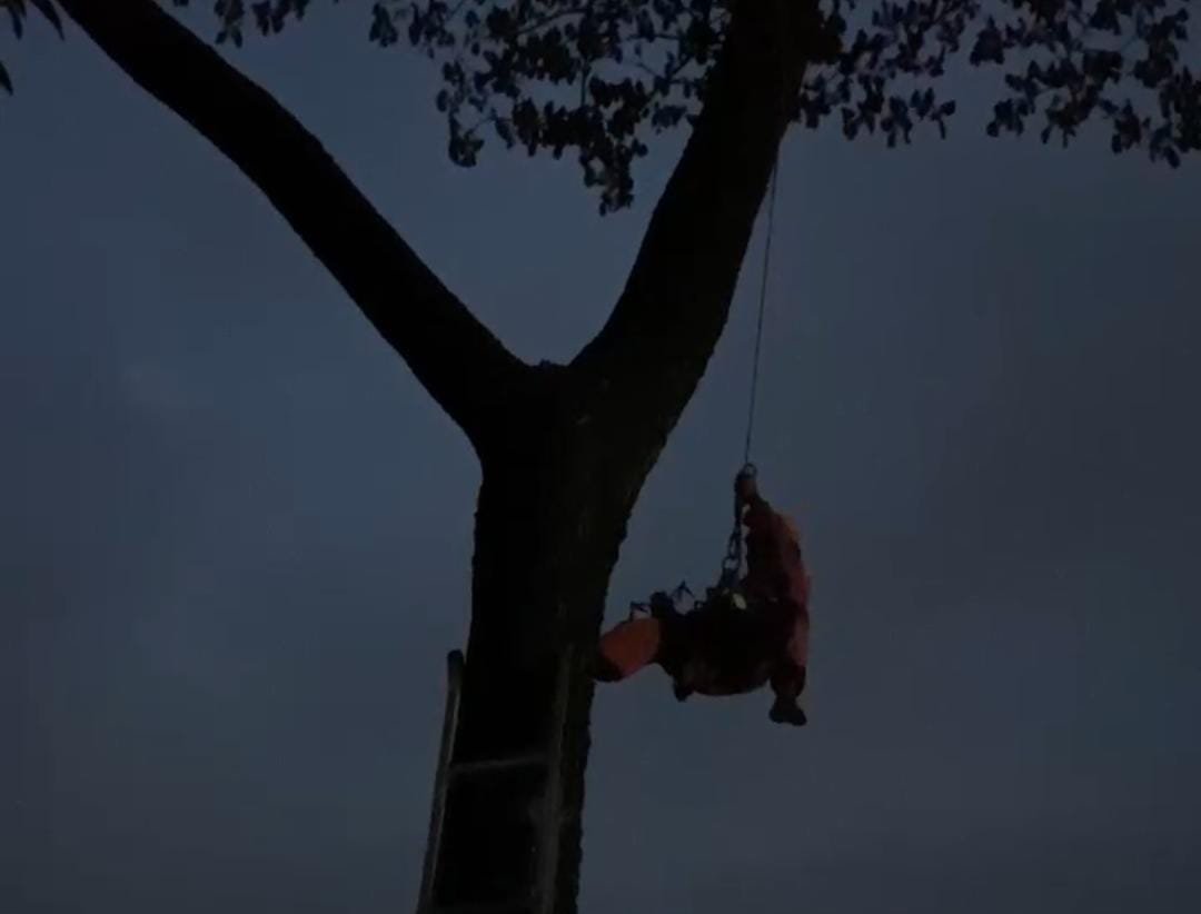 Setibanya di lokasi kejadian, Yudi mengaku bahwa anggotanya langsung memanjat pohon yang cukup tinggi tersebut saat langit sudah mulai gelap.