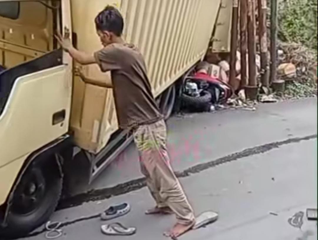 Tak Kuat Nanjak, Truk Box Hantam Motor hingga 2 Orang Luka-luka