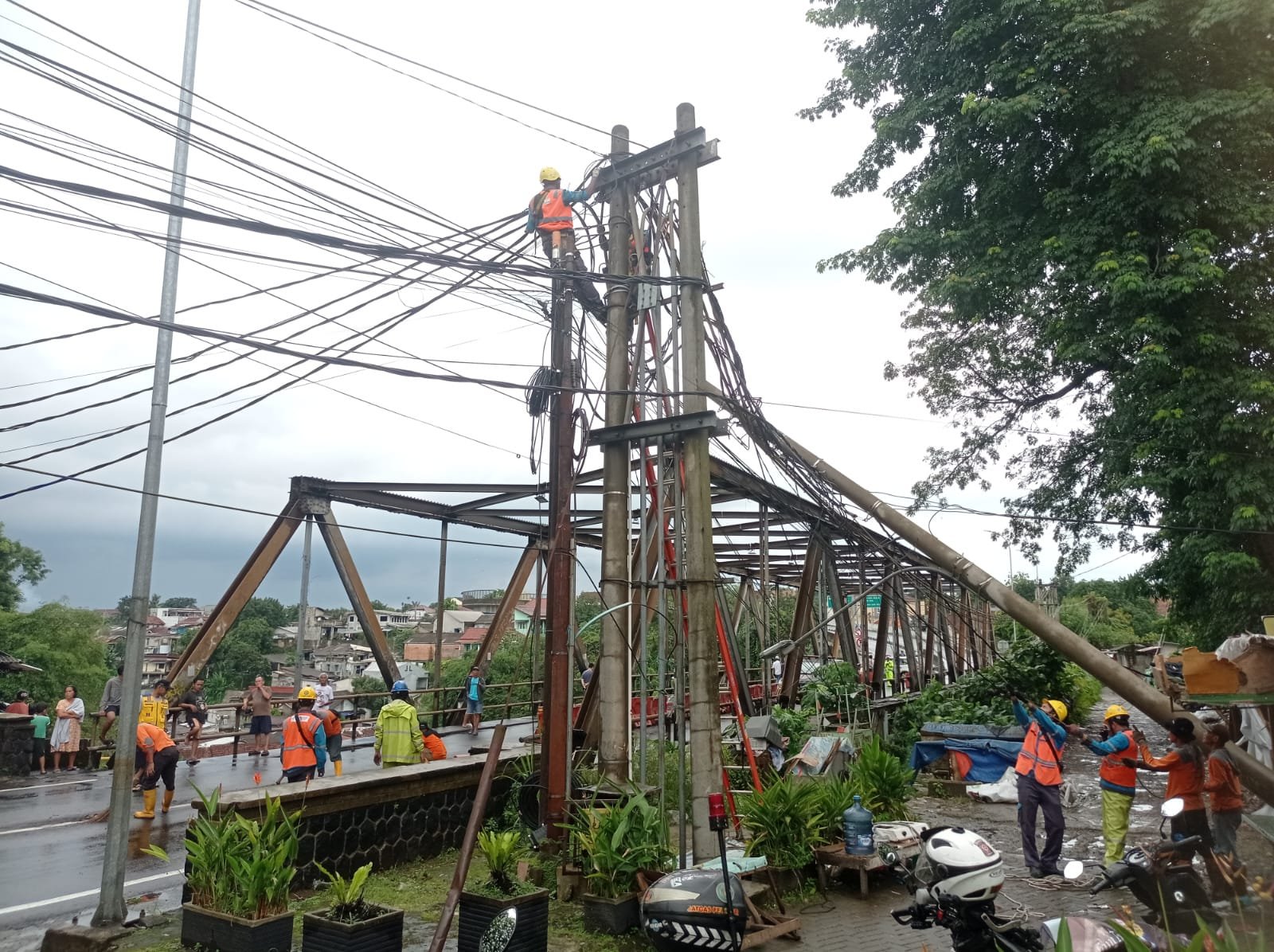 Selain itu, kata Dimas, robohnya tiang listrik juga sempat menutupi akses Jalan RE Martadinata yang berimbas pada kemacetan arus lalu lintas.